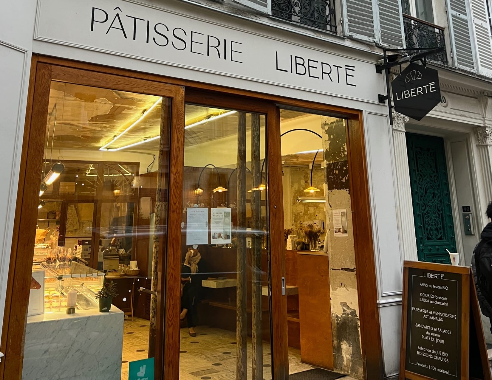 - Waking up to our first morning in Paris, we knew we needed to find some amazing pastries and fuel up on coffee to get our day moving. No more than an easy 4 minute walk away we found Pâtisserie Liberté where we found our FAVORITE chocolate croissants! Their offering of pastries is far more diverse than just chocolate croissants. Pâtisserie Liberté has a wide selection of sandwiches, baguettes, and salads but are most well known for their chocolate or almond babka, fresh apple turnovers or their incredible chocolate pavé.